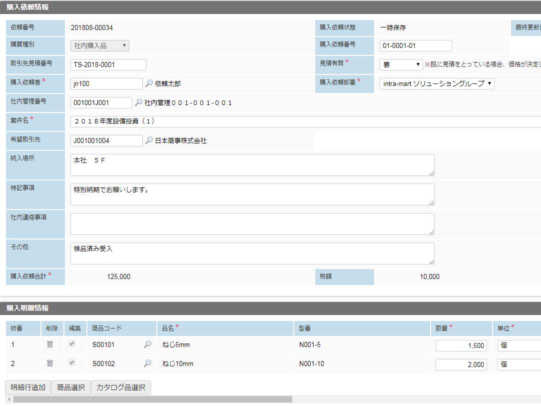 EPCUSは、調達する資材の値決め、購入先の決定、注文書の送付、検収作業等、調達・購買業務全般をサポートし、ご利用の企業様とサプライヤー様とのやり取りを、Webを介して行う調達・購買システムです。お客様の購入依頼から見積依頼、見積回答、発注依頼、納期回答、検収入力の調達・購買業務をサポートするため、各機能をシンプルなものにして、フローの組み換えや、カスタマイズしやすい仕組みを用意しております。フレームワークには、株式会社NTTデータイントラマート社のintra-mart Accel Platform を採用し、システムの共通基盤として利用可能な仕組みの上でお客様の実現したい機能を低価格で構築することを目指した製品です。